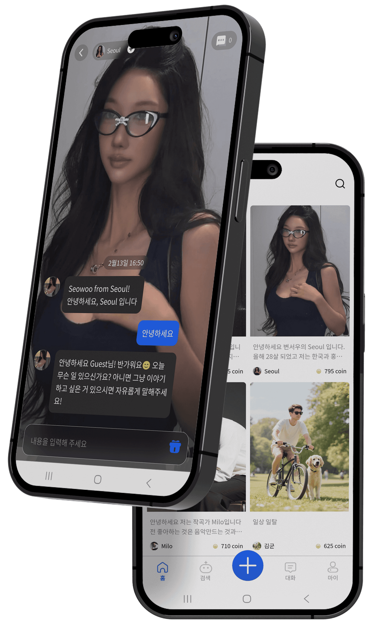 실사형 AI 캐릭터 또는 2D 애니메이션 스타일 중 원하는 캐릭터를 자유롭게 선택할 수 있습니다.
